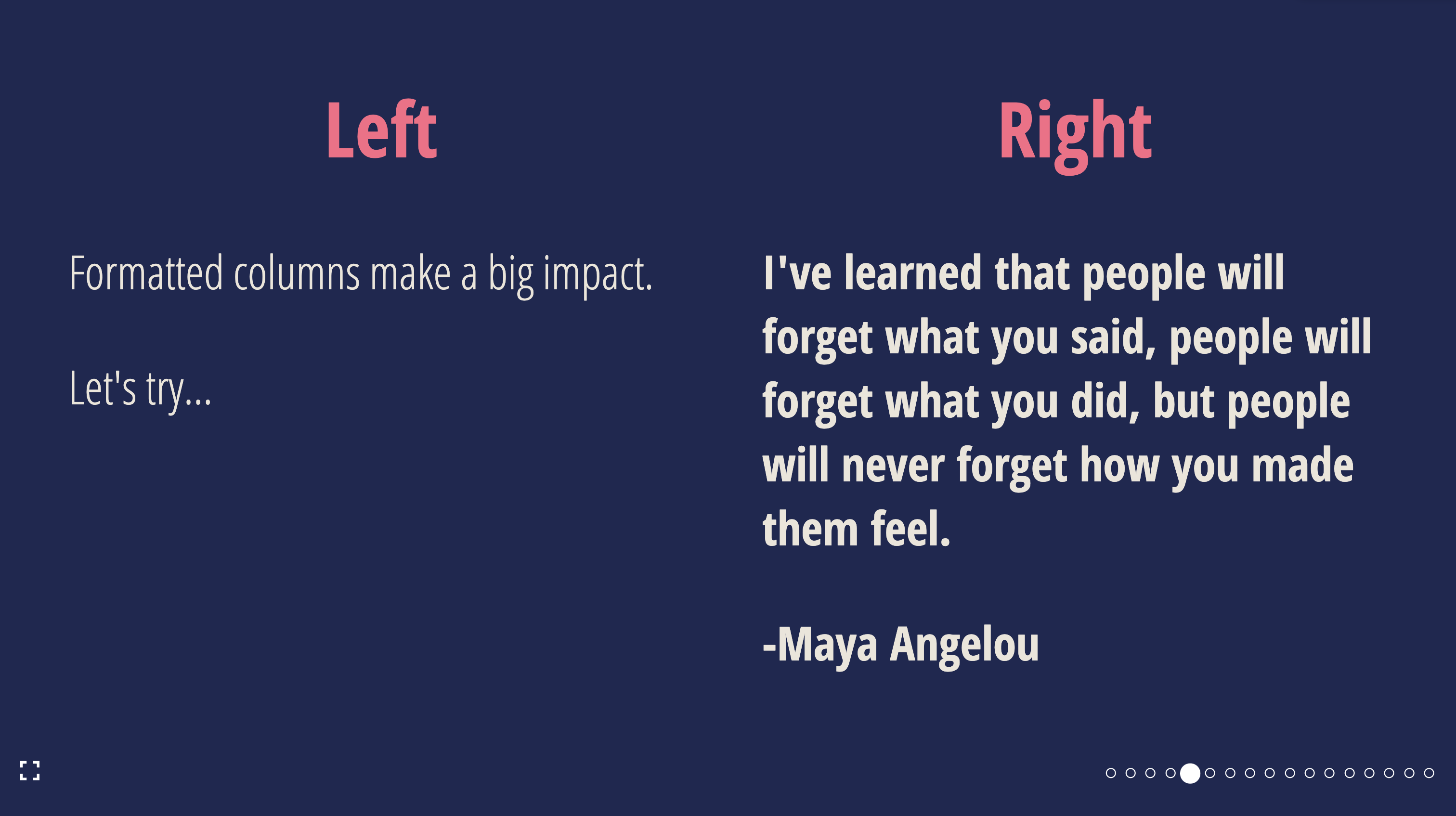 A layout with more than one code block: multiple code panes with optional descriptions, and an optional slide title.